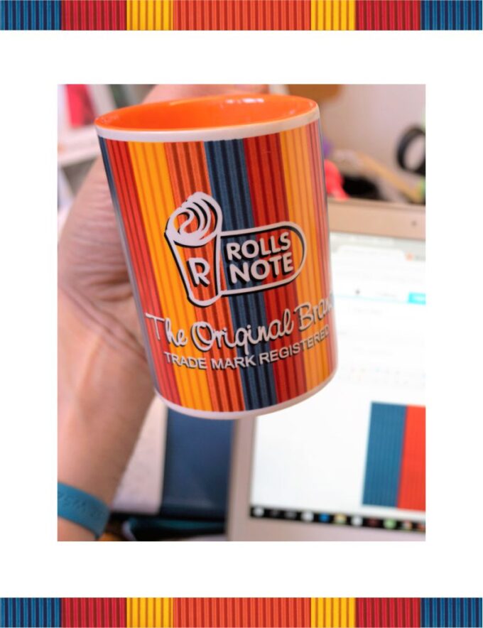 Ten oryginalny kubek może być Twój. Jest idealnym uzupełnieniem do naszych legendarnych notesów Rollsnote.